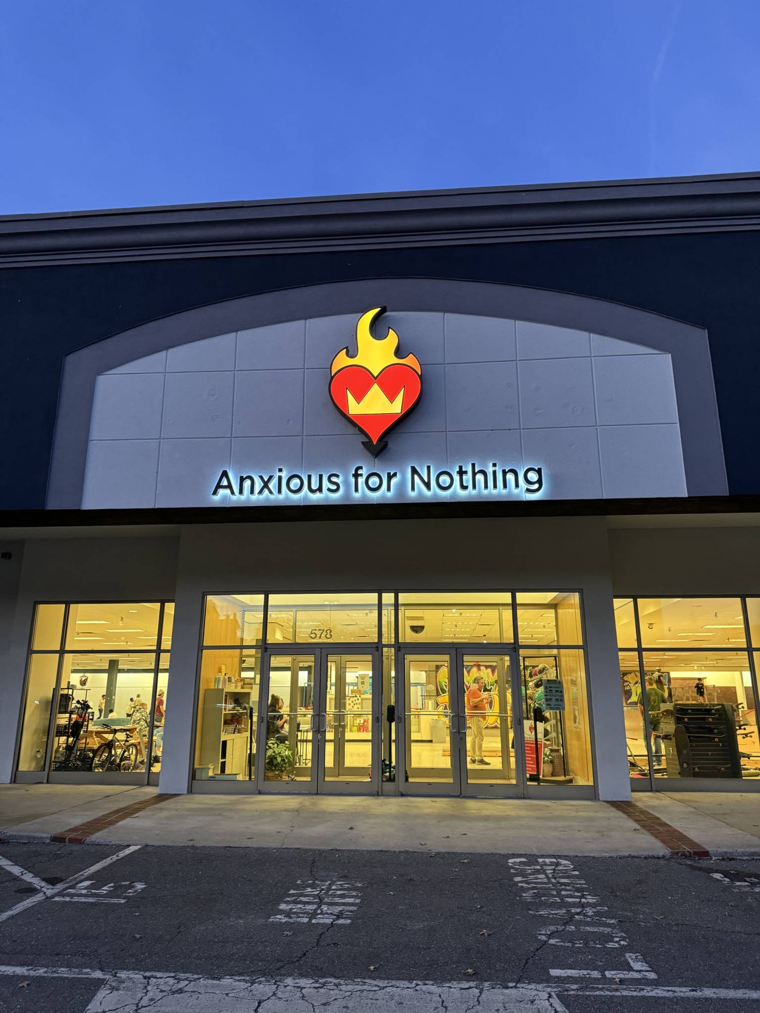 As Karla was praying over and thinking about a name for the center, she was woken up in the middle of the night with the name “Anxious for Nothing” on her heart. At first, she wasn’t a big fan of the name and even asked the Lord if He was sure this was the right choice. She continued to think on it, thinking about this new generation of young people and what the world has to say about them. They are labeled by some as the “anxious generation” – the most anxious of any generation that has gone before. Karla wants that language to stop. She is declaring them the “un-anxious” generation; she still believes in their worth, their purpose, and the plan that the God of the universe has in mind for them. Karla relented, and “Anxious for Nothing” now graces the building.