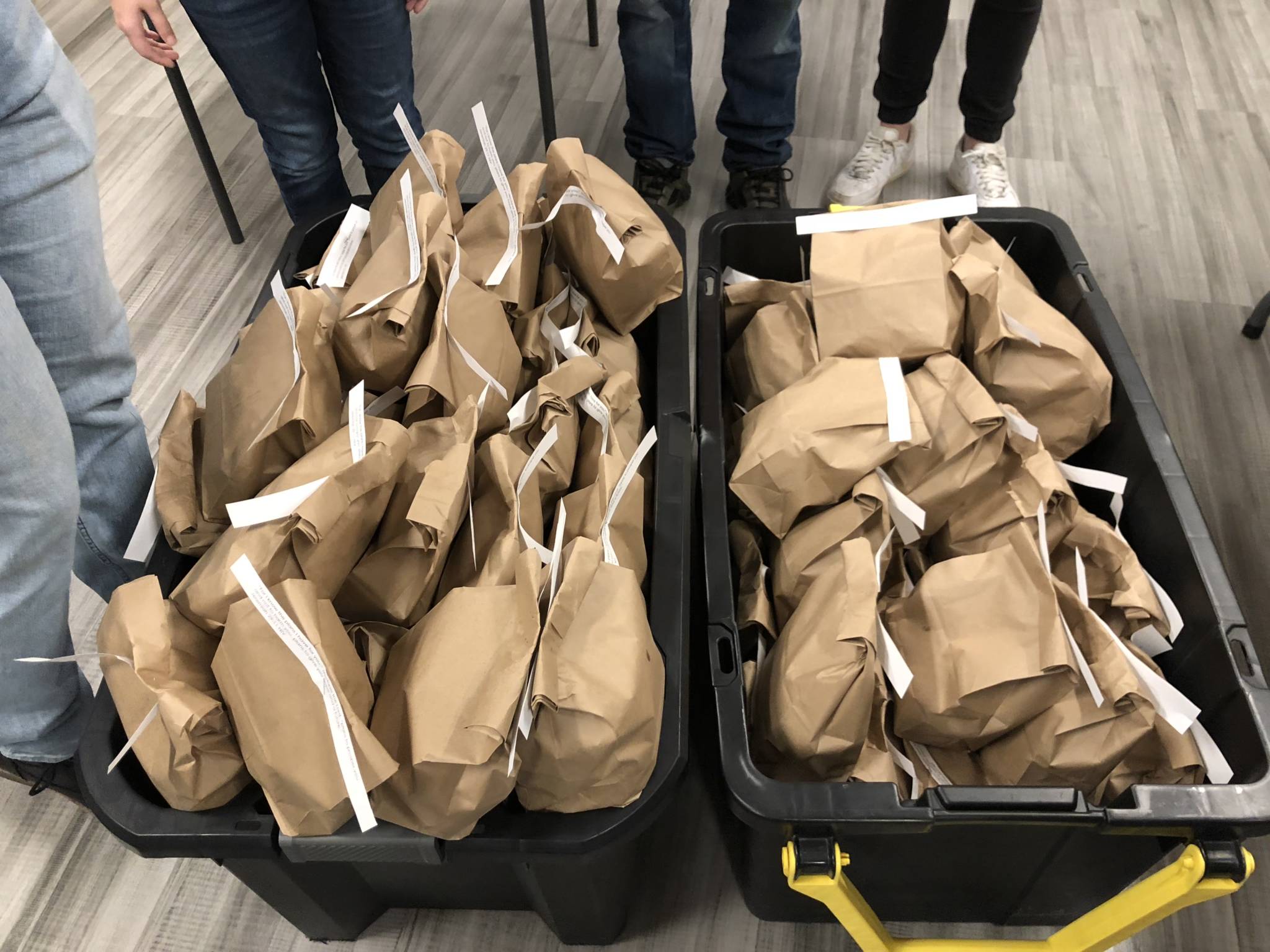 When they arrived at the hotel, they lowered the tailgate of their truck and said, “We’ve got lunch if you’re hungry.” Karla said that the bags of food were gone within three minutes, but the Powells were able to pray for a few individuals and share the love of Christ. Karla and Harley went back the next week and the next with even more sandwiches, and they started writing scriptures on the brown lunch bags.